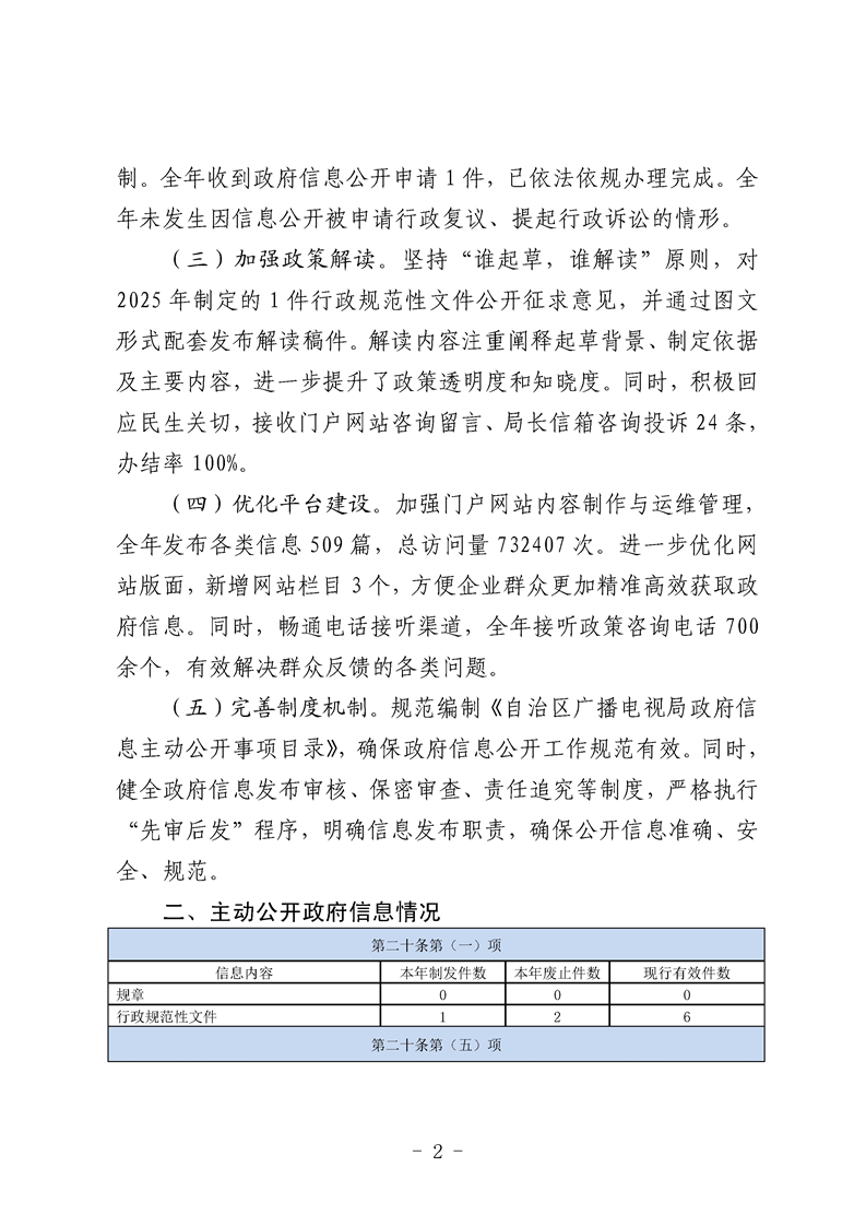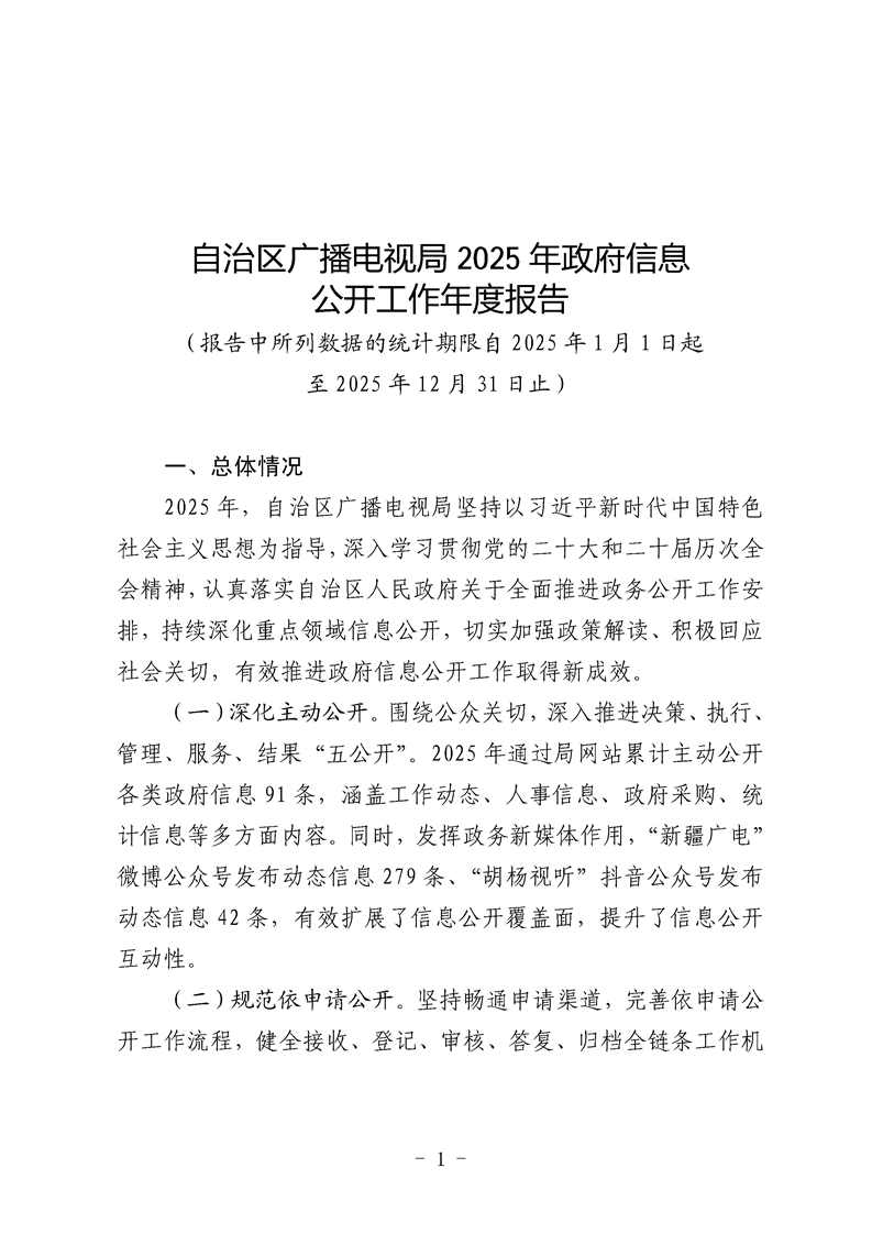 新疆维吾尔自治区广播电视局政府网站工作2025年度报表