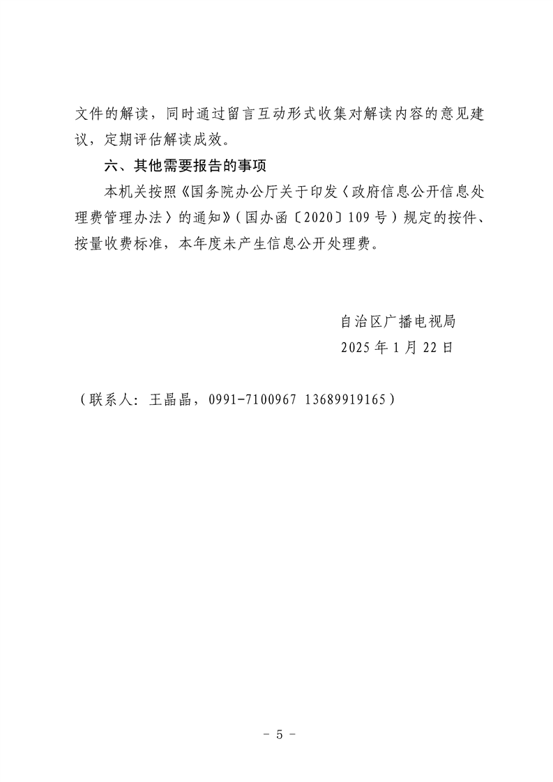 新疆维吾尔自治区广播电视局政府网站工作2024年度报表